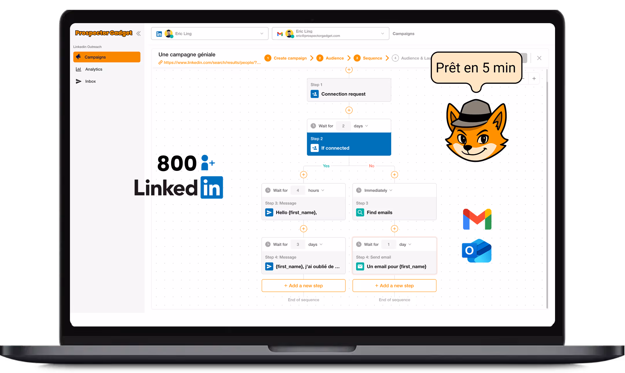 Pendant que Prospector Gadget tourne, toi tu te concentres sur ton cœur de métier. Moins de gestion, plus de résultats, sans perdre ton authenticité.