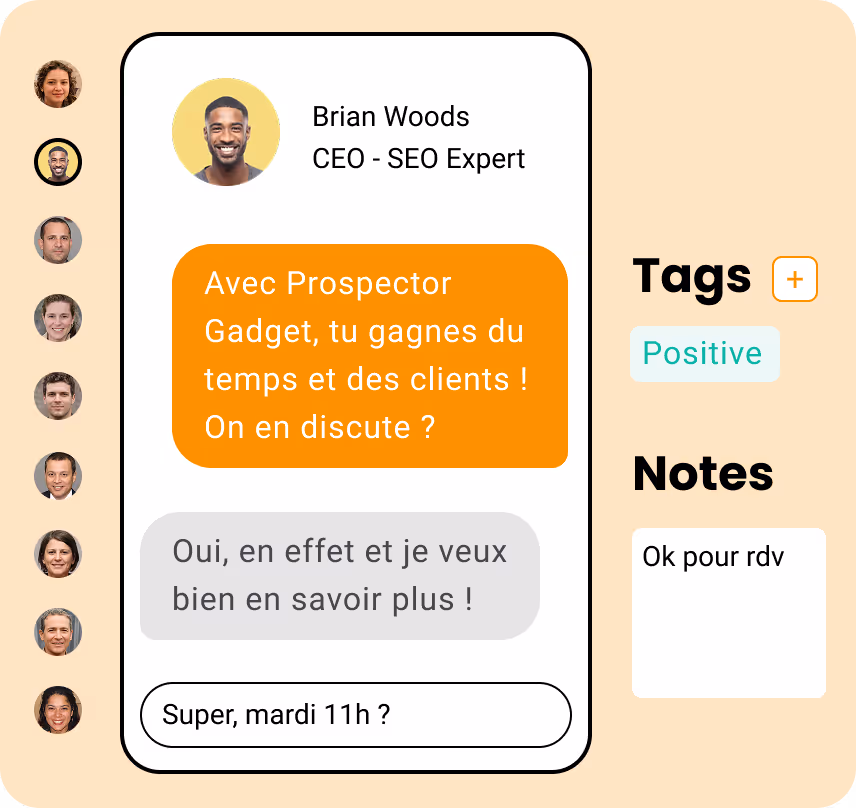 Pendant que Prospector Gadget tourne, toi tu te concentres sur ton cœur de métier. Moins de gestion, plus de résultats, sans perdre ton authenticité.